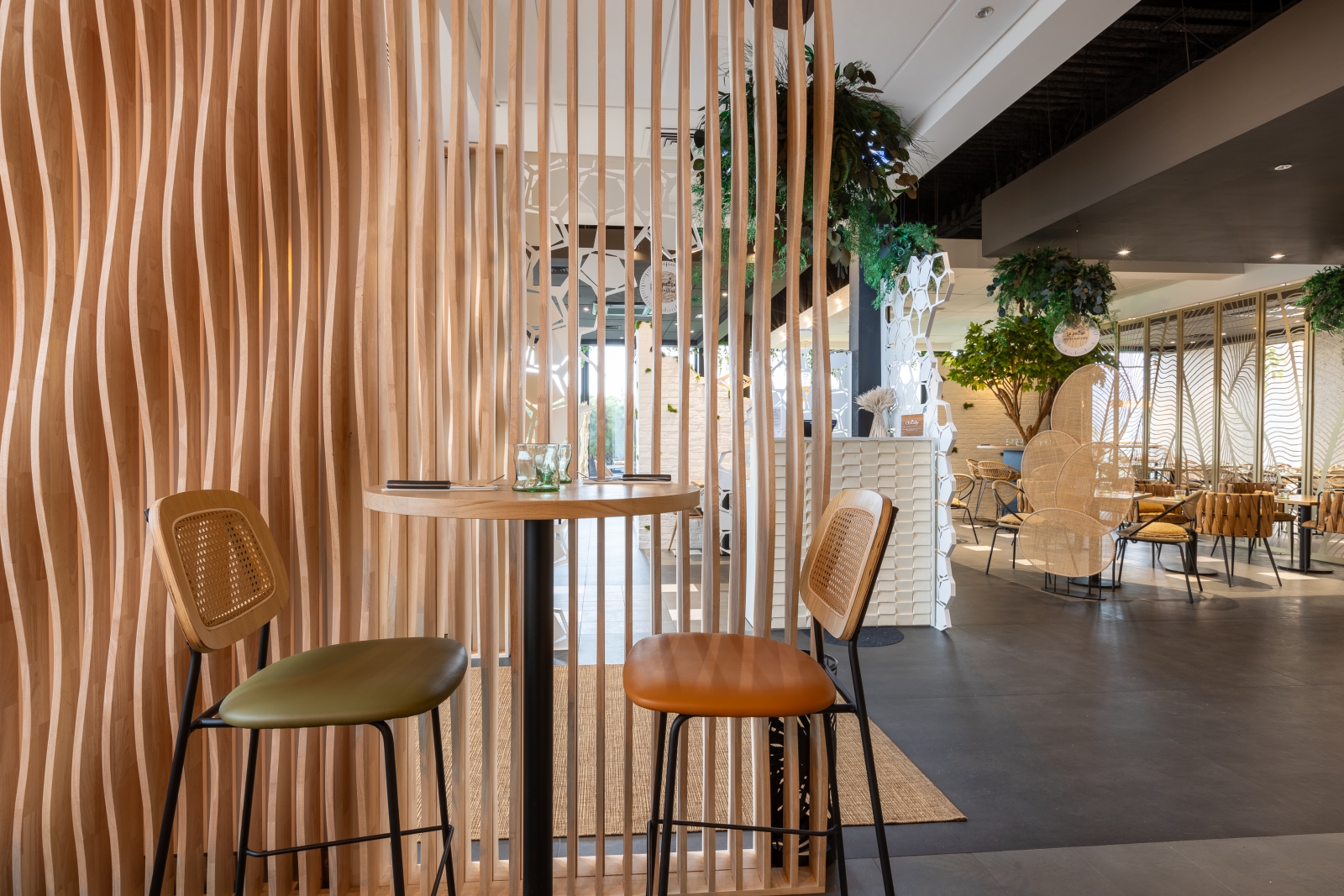 Dès que vous franchirez nos portes, vous serez enveloppé dans un cadre moderne et végétal, où les revêtements naturels, le bois, les plantes vertes fusionnent pour créer une atmosphère véritablement unique. Le naturel imprègne chaque détail, conférant une authenticité particulière à notre établissement.
